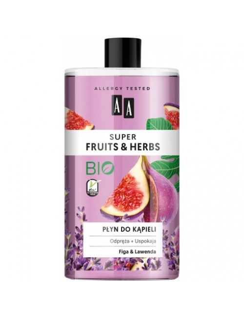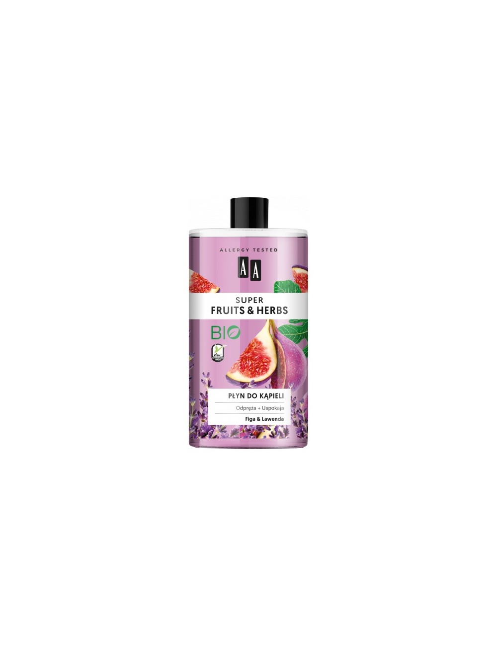 Odkryj niezwykłą moc naturalnej pielęgnacji z AA SUPER FRUITS & HERBS! Unikalna kompozycja wyselekcjonowanych ekstraktów z superowoców i wyjątkowych ziół dostarczy skórze zastrzyk skoncentrowanych substancji odżywczych i witamin. Apetycznie soczyste zapachy otulą ciało, odprężając i wprawiając Cię w doskonały nastrój. Spraw sobie wyjątkową kąpiel i sięgnij po Płyn do kąpieli z figą i lawendą, a Twoja skóra stanie się odprężona i przyjemnie gładka.