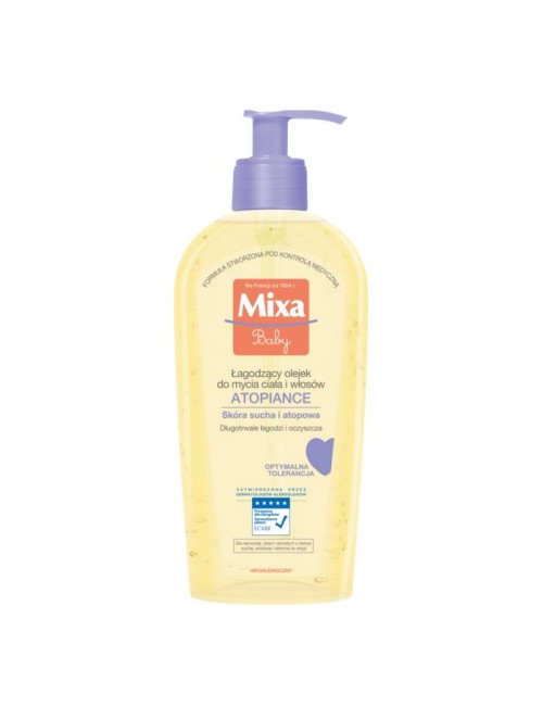 For atopy-prone skin, our first ATOPIANCE Mixa Soothing Body and Hair Oil was developed. Instantly and long-lastingly soothes atopic skin of infants, children and adults. The oil gently washes the body and hair, protecting the skin's lipid barrier. Its formula, enriched with the nourishing and soothing Omega-8 complex, containing 8 complementary fatty acids, long-term soothes dry skin prone to atopy. Composition selected to minimize the risk of allergic reactions. Hypoallergenic formula, without fragrances, certified by the European Center for Allergy Research Foundation - ECARF.