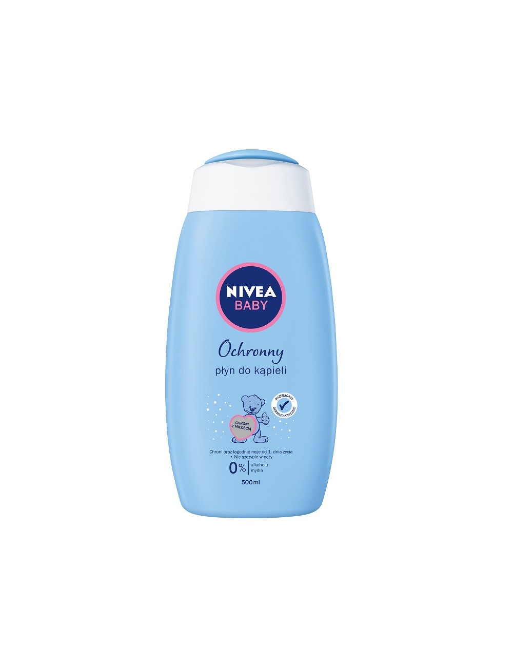 NIVEA BABY płyn do kąpieli łagodnie myje delikatną skórę dziecka już od 1. dnia życia. Dzięki kremowej, niezawierającej mydła formule wzbogaconej wyciągiem z rumianku pomaga chronić skórę przed wysuszeniem, nawet podczas częstych kąpieli. Sprawia, ze skóra po kąpieli jest miękka i gładka. Dodatkowo zmiękcza wodę, by kąpiel była dla dziecka jeszcze przyjemniejsza. Produkt powstał przy współpracy pediatrów i dermatologów. Formuła stworzona tak, aby zapewnić wysoką tolerancję dla delikatnej i wrażliwej skóry niemowląt i dzieci. Bez alkoholu etylowego i mydła. Ma pH przyjazne dla skóry.