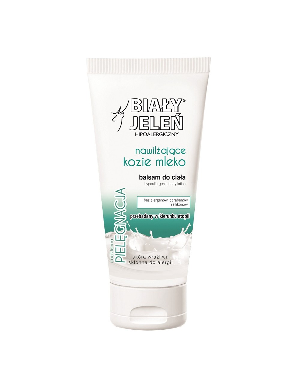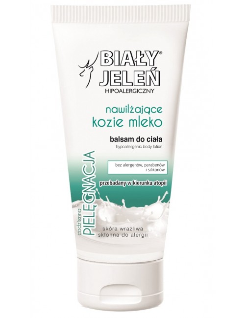 Balsam do ciała od marki Biały Jeleń, z dodatkiem koziego mleka. Odpowiedni dla osób o wrażliwej skórze, ze skłonnością do alergii.