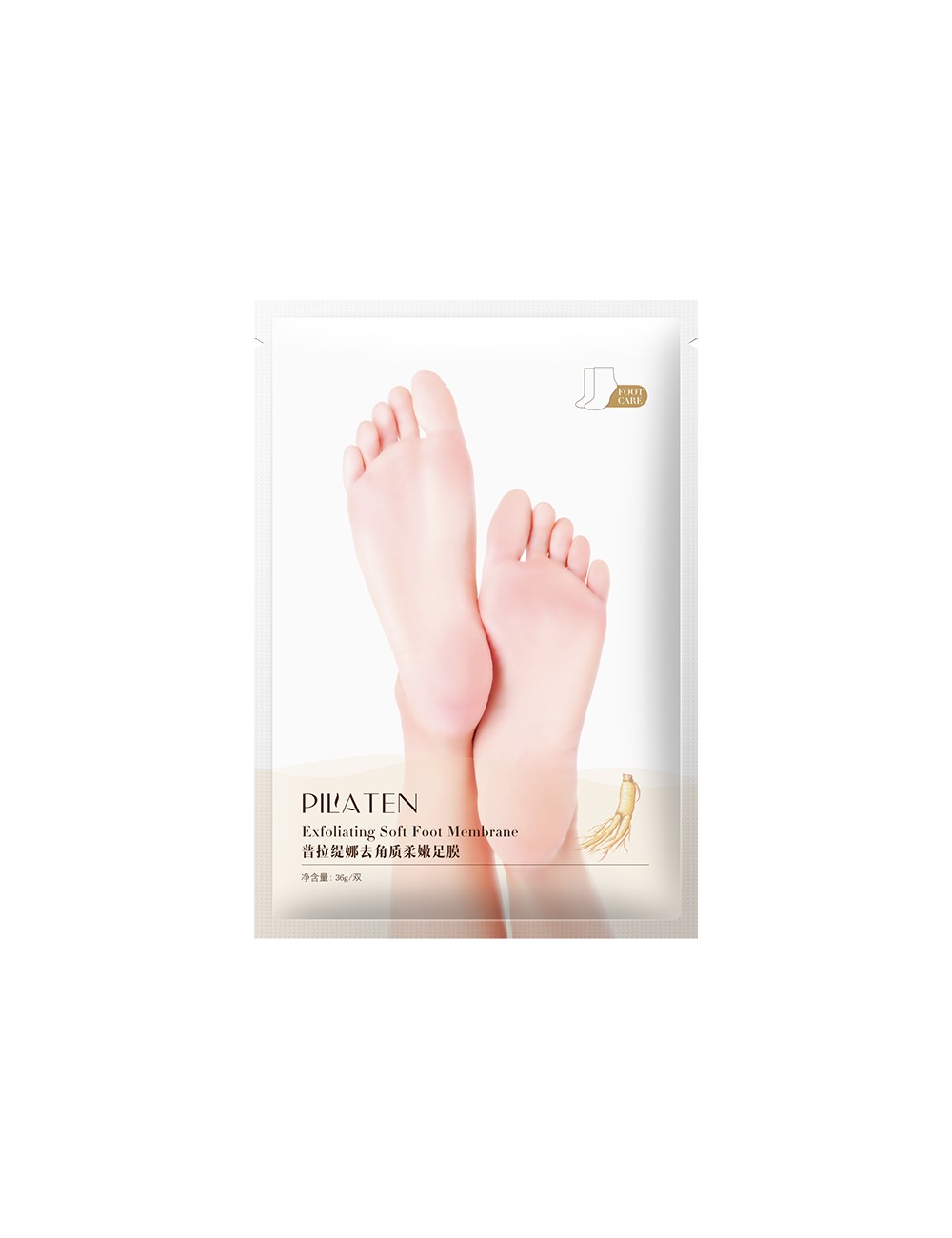 Exfoliating Soft Foot Membrane to maska do stóp w postaci skarpetek nasączonych złuszczająco-nawilżającą esencją. Delikatna formuła zawiera ekstrakty roślinne, które skutecznie usuwają martwe komórki naskórka, pozostawiając skórę miękką i nawilżoną. Ekstrakt z żeń-szenia dotlenia, regeneruje oraz poprawia ukrwienie skóry. Dzięki zawartości łagodnego kwasu mlekowego maska usuwa martwy naskórek i modzele. W opakowaniu znajdują się dwie skarpetki.