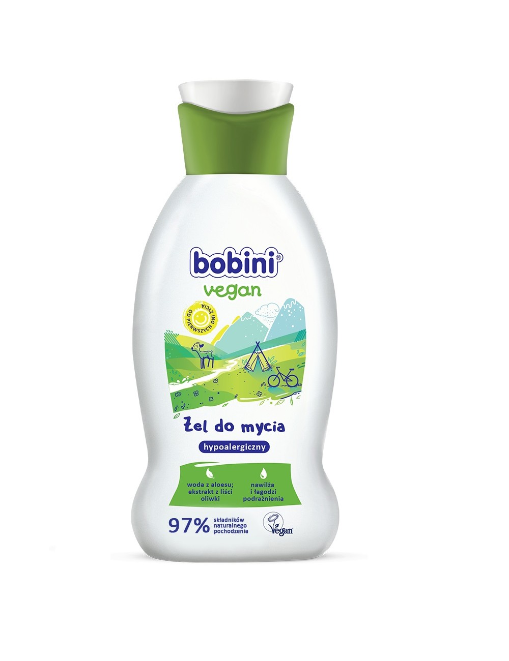Bobini Vegan hypoalergiczny żel do mycia ciała – tylko to, co najlepsze z natury dla naszych maluchów. Łagodna formuła oparta jest na substancjach myjących roślinnego pochodzenia, które zapewniają wrażliwej skórze optymalną pielęgnację. W połączeniu z naturalnymi składnikami nawilżającymi i odżywczymi żel delikatnie myje buzię i ciało. Od 1-go dnia życia.