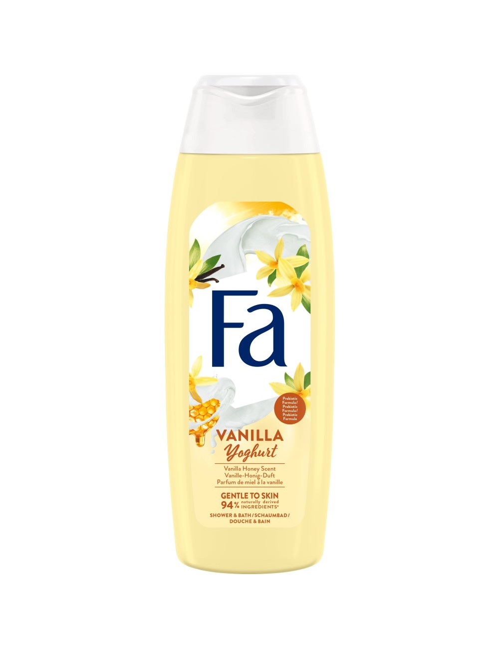 Poznaj nową odsłonę fascynującej świeżości! Wybierz Fa Vanilla Yoghurt żel pod prysznic i do kąpieli z formułą wzbogaconą o prebiotyki i o odświeżającym i odprężającym zapachu wanilii i miodu, który zapewni Ci pełną relaksu kąpiel. Odśwież swoje ciało & umysł i pozwól swoim zmysłom odkrywać nowe odległe zakątki świata.