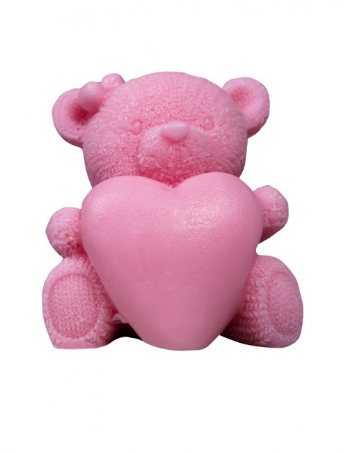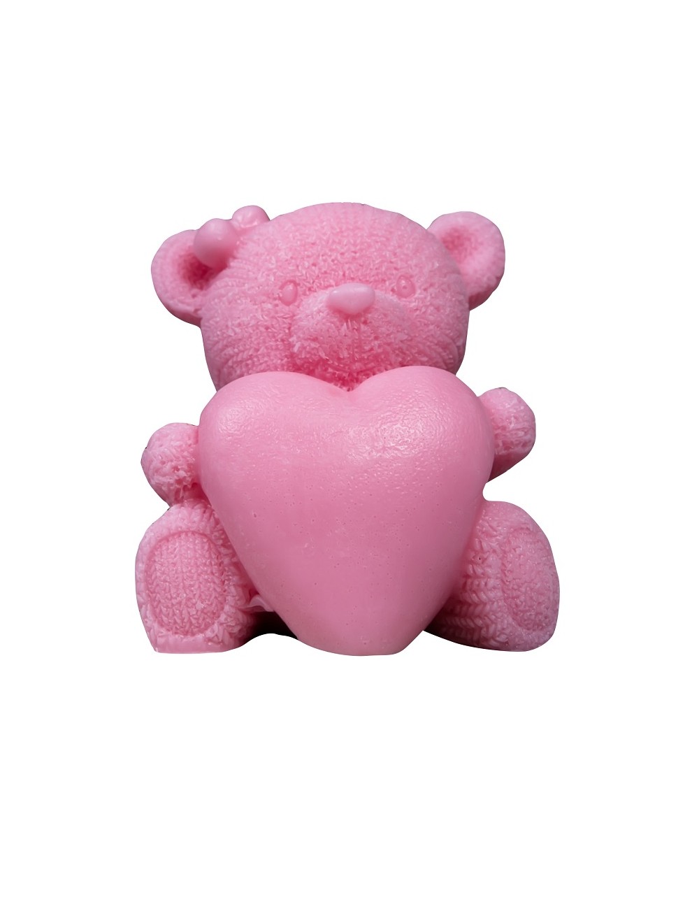 Ręcznie robione mydło glicerynowe w kształcie misia z sercem, o zapachu wiśni. Wzbogacone o szlachetne masła: shea, kakaowe i mango. Pielęgnuje skórę i zapobiega jej wysuszeniu.