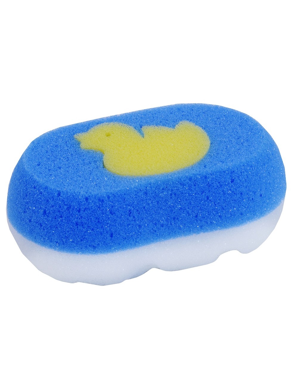 Gąbka posiada dodatkowy, ciekawy, wyjmowany element w kształcie kaczuszki, który również służy do mycia, ponadto urozmaica codzienną kąpiel maluszka.