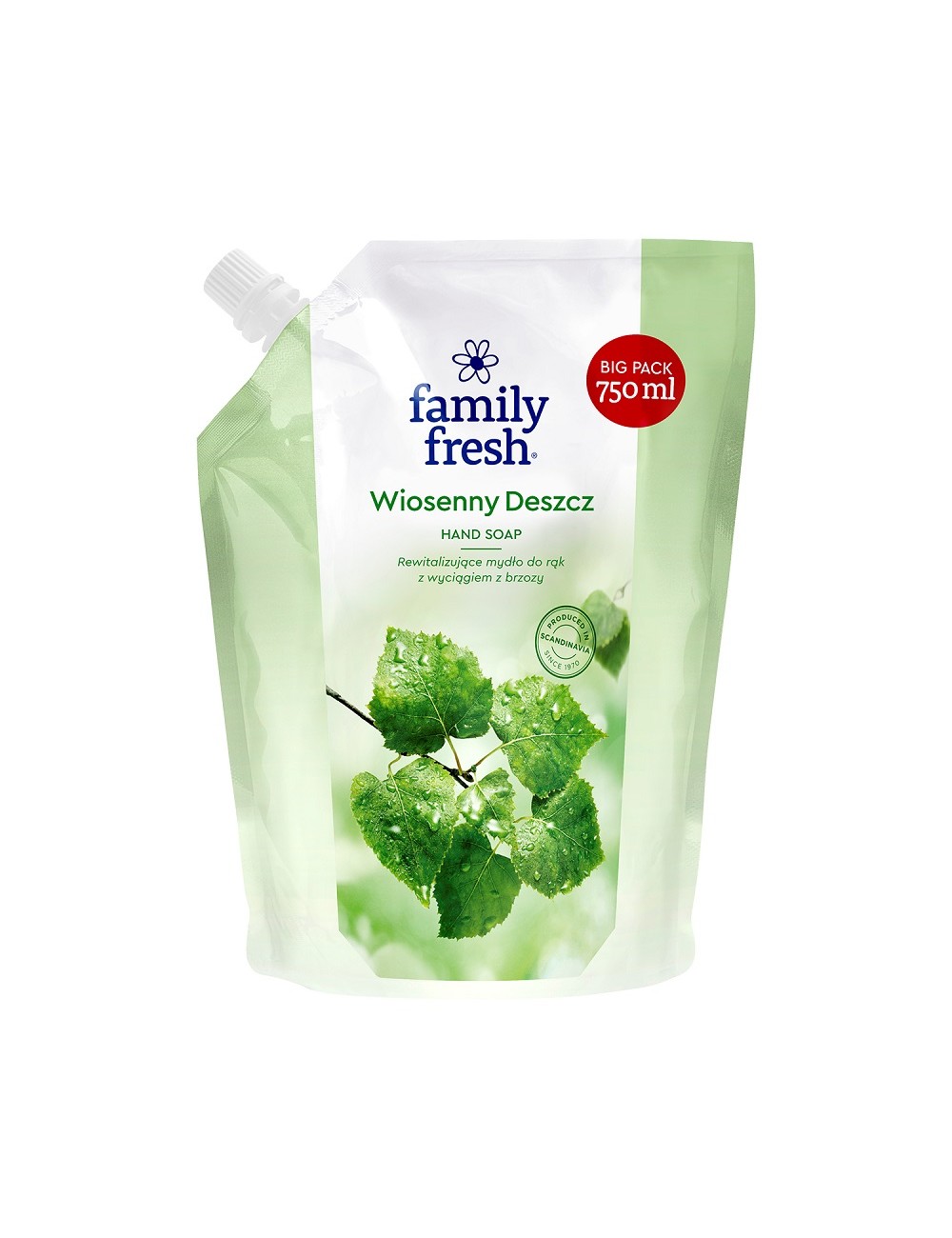 Family Fresh Wiosenny deszcz to czysta przyjemność dla całej rodziny! Mydło z rewitalizującym wyciągiem z brzozy doskonale myje i pielęgnuje skórę dłoni. Inspiracją do stworzenia rewitalizującego mydła do rąk o delikatnym, świeżym zapachu pąków wiosennych kwiatów, była niepowtarzalność przyrody. Od białych nocy na północy po słoną bryzę na zachodzie. Od cudownie kwiecistych łąk po przepiękne lasy jodłowe. Poczuj naturę w swojej łazience dzięki Family Fresh!
