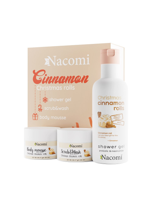 Dziel się radością razem z zestawem Cinnamon Christmas Rolls, który uprzyjemni każdy pielęgnacyjny rytuał. Pozwoli poczuć magiczną atmosferę świąt i to dosłownie. Zapach pachnących bułeczek cynamonowych otuli zmysły i sprawi, że ten błogi stan pozostanie na dłużej! Ta słodka, cynamonowa woń natychmiast wypełni każde pomieszczenie, wywołując w nas wspomnienie czasów dzieciństwa. Zawarte kosmetyki przyspieszą regenerację naskórka oraz pomogą zachować jędrną, dobrze nawilżoną skórę.