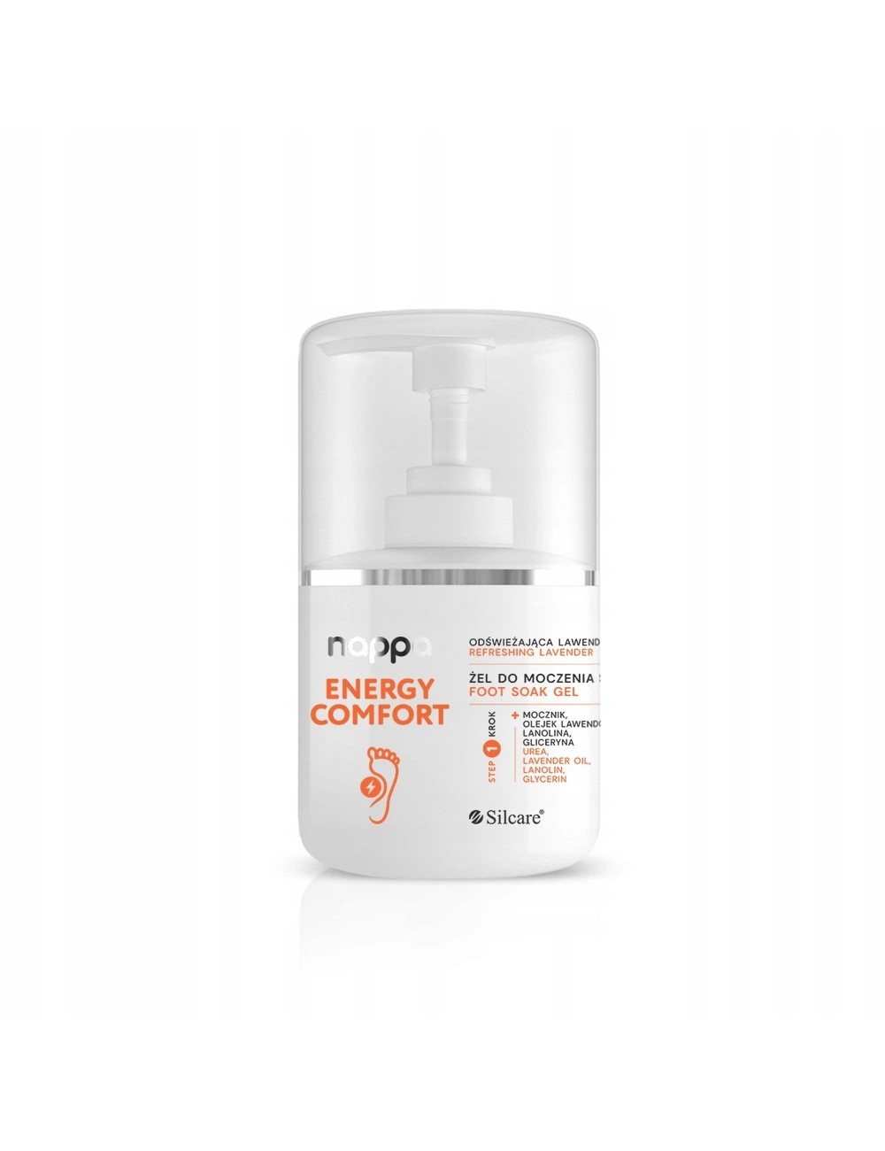 Nappa Żel do moczenia stóp to delikatna formuła, która nie tylko myje, ale również pielęgnuje suchą skórę stóp i pięt, dzięki czemu sprawdza się idealnie jako pierwszy etap zabiegu pedicure. Zawarty w żelu mocznik łagodzi i zmiękcza szorstką skórę, sprawiając, że staje się ona wygładzona i aksamitna w dotyku. Formuła wzbogacona olejkiem lawendowym pomaga odświeżyć i znormalizować skórę stóp, a przy tym działa łagodząco.
