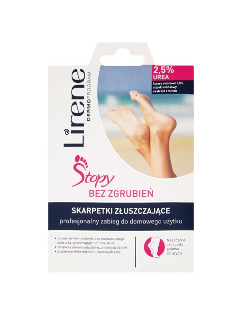 Maseczka w formie gotowych do użycia, nasączonych skarpetek zawiera 7,5% kompleksu kwasów owocowych (mlekowego i glikolowego), które efektywnie stymulują proces eksfoliacji obumarłego naskórka, wspomagając odnowę skóry stóp. Intensywne działanie złuszczające maseczki trwa 7-10 dni po zastosowaniu. Zawarty w maseczce bogaty zestaw składników aktywnych pielęgnuje skórę w czasie i po zakończeniu zabiegu.