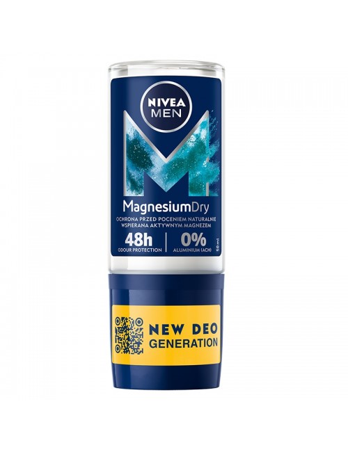 Odkryj nową generację antyperspirantów: NIVEA MEN MagnesiumDry. Formuła z aktywnym magnezem zapewnia naturalną i skuteczną ochronę przed potem - bez aluminium (ACH). Utrzymuje zdrową skórę, zapewnia przyjemne uczucie świeżości na skórze i chroni przed wilgocią pod pachami. Formuła nie zawiera alkoholu etylowego i zapewnia przyjemny zapach. Bezpieczne dla skóry działanie antyperspiracyjne jest możliwe dzięki wykorzystaniu przełomowej formuły z chlorkiem magnezu - minerału który naturalnie występuje w ciele człowieka. Łagodność dla skóry potwierdzona dermatologicznie. Formuła pielęgnuję skórę i zachowuje jej zdrowy wygląd.
