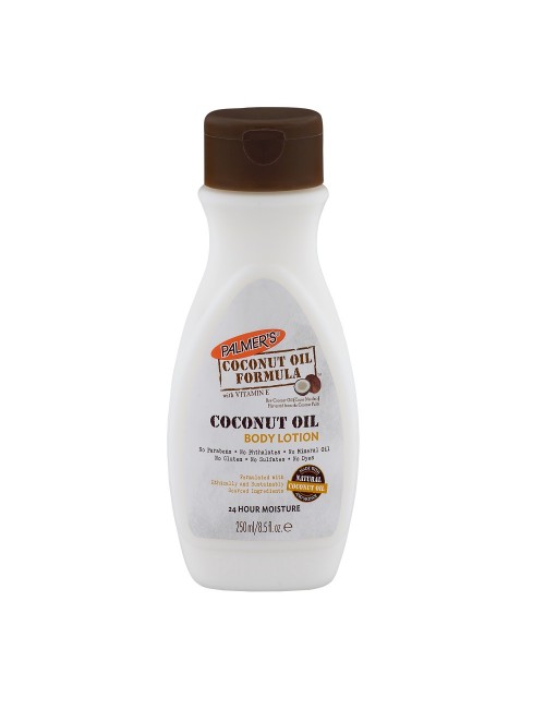 PALMER'S Coconut Oil Formula lotion is free from parabens, phthalates, paraffin, sulphates, gluten and artificial dyes. The coconut oil used in the lotion has been sustainably sourced as part of fair trade.
