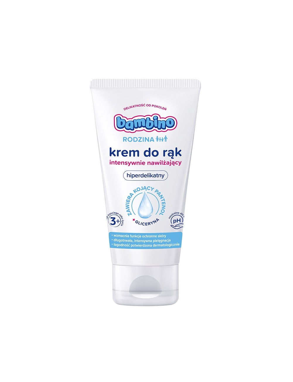 Intensively moisturizing hand cream is a delicate formula intended for use by both adults and children over 3 years of age. The cream maintains the natural hydro-lipid balance, preventing the skin from drying out. It cares for the skin and provides it with long-lasting hydration.