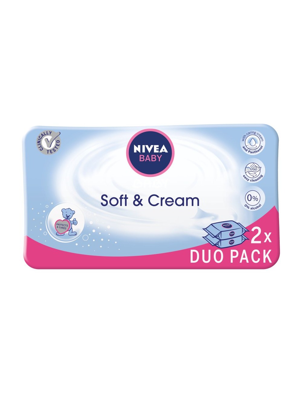 NIVEA BABY Chusteczki Soft&Cream wyjątkowo delikatnie oczyszczają skórę dziecka. Łagodnie pielęgnują i zapewniają natychmiastową ulgę podrażnionej skórze. Nasączone delikatnym kremem pielęgnacyjnym z pantenolem. Utrzymują naturalne pH skóry. Formuła dostosowana do delikatnej i wrażliwej skóry niemowląt i dzieci.