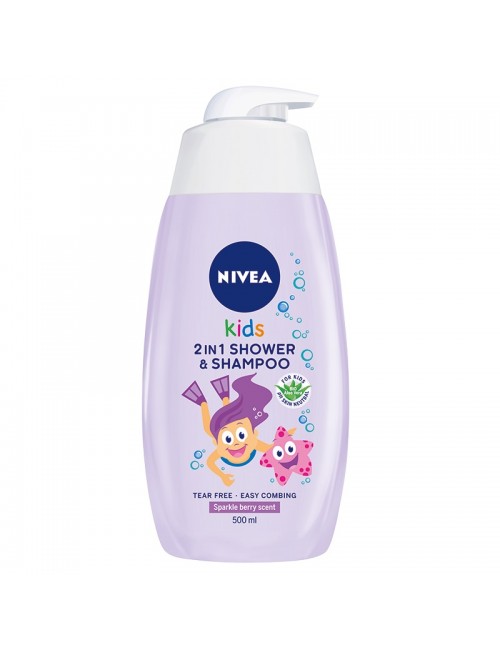 NIVEA Kids 2in1 Shower & Shampoo Sparkle Berry Scent 500ml |