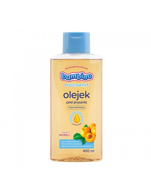 Łagodny olejek pod prysznic i do kąpieli w wannie do codziennego stosowania. Zawiera legendarną oliwkę Bambino i olejek rycynowy. Utrzymuje prawidłowe nawilżenie skóry i zapobiega podrażnieniom. Delikatna, bogata formuła, opracowana dla całej rodziny, delikatnie oczyszcza i łagodzi skórę zapewniając jej ukojenie i owocowy zapach moreli.