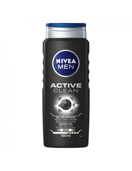 NIVEA MEN Active Clean cleansing shower gel 3in1 suitable for: body, face and hair. The innovative formula is based on natural active carbon, which acts as a magnet for dirt, deeply cleanses the skin and dries it at the same time. Effective and at the same time mild gel with a male scent turns into a delicate foam that makes the skin revitalized and well-groomed. The product is ideal for men who are looking for deep cleansing and a feeling of refreshed and well-groomed skin. Suitable for daily use. The product has been dermatologically tested. Skin-friendly pH of the product.