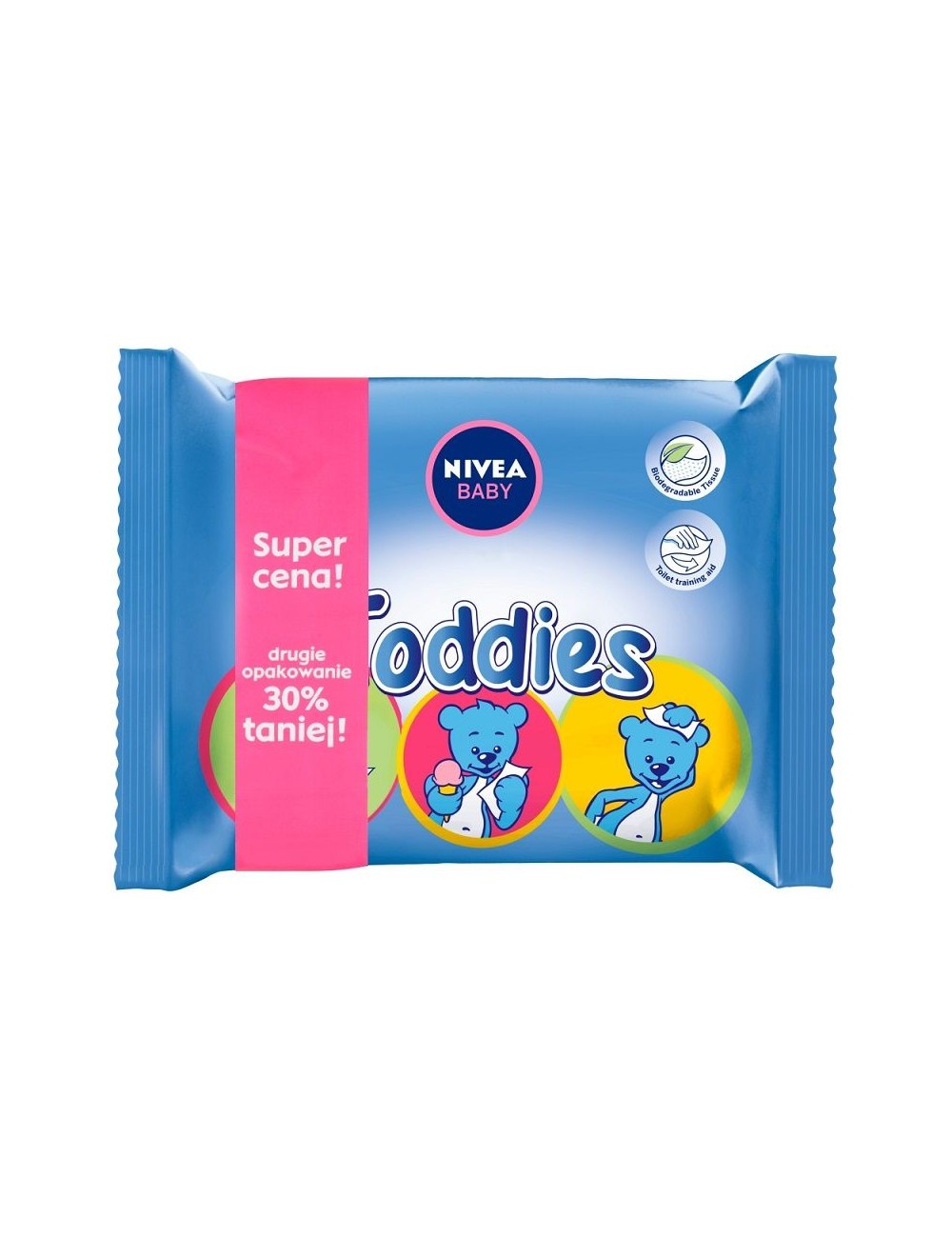NIVEA Baby Toddies wipes are a multi-purpose product. They help in the daily care of a child. They effectively and gently clean both the face, hands and bottom of the baby. The shape of Toddies wipes has been designed specifically to support the learning process of self-training of cleanliness. They have a pleasant and delicate fragrance. The product was created in cooperation with pediatricians and dermatologists. Safety and effectiveness have been confirmed in clinical trials. The formula of the wipes has been developed to maintain the natural pH of the skin. To ensure gentle care of the baby's skin, the wipes do not contain alcohol.