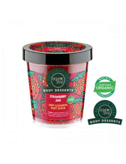 Organic Shop Body Desserts Strawberry Jam Deep Cleansing gives the skin a perfect smoothness and deeply nourishes it. Scrub smooths the skin, additionally has a detoxifying effect, leaving our skin silky smooth and beautiful. The scrub additionally tempts with a beautiful scent of strawberry jam, which puts you in a great mood every time you use it.
