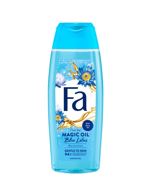 Poznaj nową odsłonę fascynującej świeżości! Wybierz Fa Magic Oil Blue Lotos żel pod prysznic z formułą wzbogaconą o pielęgnujące mikroolejki i o odświeżającym i zmysłowym zapachu kwiatu niebieskiego lotosu, który zapewni Ci tropikalną podróż pod prysznicem. Odśwież swoje ciało & umysł i pozwól swoim zmysłom odkrywać nowe egzotyczne nuty odległych zakątków świata.