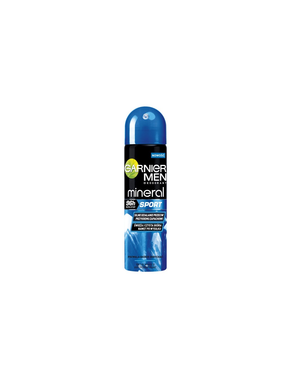 Garnier Men Mineral Sport antiperspirant spray designed for the effect of strong protection against sweat, even after exercise.