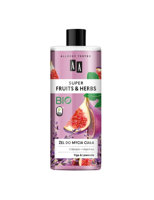 Odkryj niezwykłą moc naturalnej pielęgnacji z AA SUPER FRUITS & HERBS! Unikalna kompozycja wyselekcjonowanych ekstraktów z superowoców i wyjątkowych ziół dostarczy skórze zastrzyk skoncentrowanych substancji odżywczych i witamin. Apetycznie soczyste zapachy otulą ciało, odprężając i wprawiając Cię w doskonały nastrój. Sięgnij po wyjątkowy Żel do mycia ciała z figą i lawendą, a poczujesz jak Twoja skóra staje się przyjemnie odświeżona, ukojona i wyciszona.