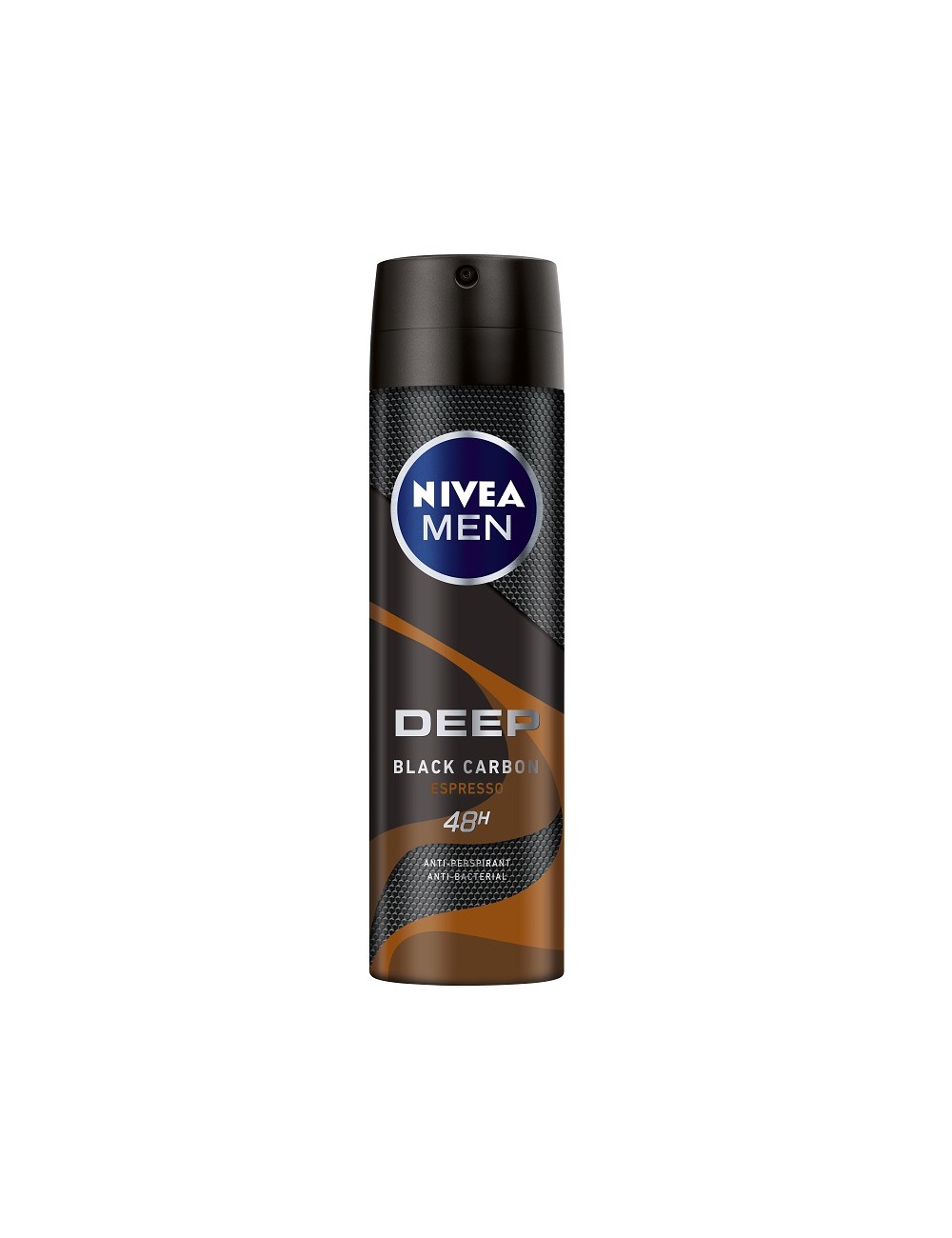 NIVEA MEN Deep Espresso with black carbon spray ensures a long-lasting feeling of dry and clean skin. The formula with active carbon provides strong antibacterial protection. Effective 48-hour antiperspirant protection for your skin. Long-lasting, masculine and intriguing ESPRESSO fragrance. It is dermatologically proven to be gentle on the skin.