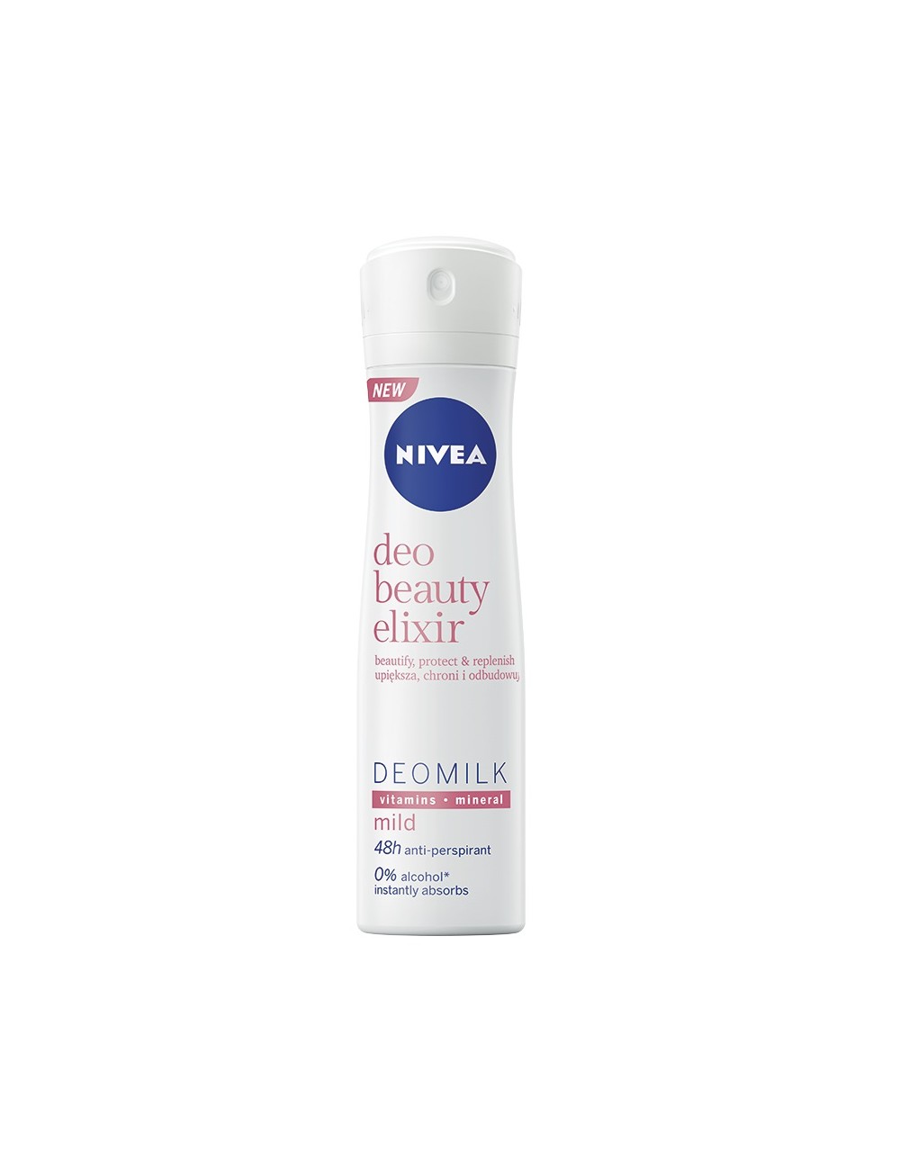 NIVEA DEOMILK BEAUTY ELIXIR MILD contains valuable milk essence rich in calcium and vitamins. It acts as a caring elixir: it beautifies, protects and restores the skin, even after epilation. Reliable 48h antiperspirant protection.