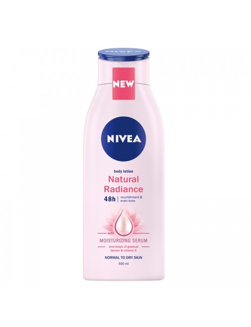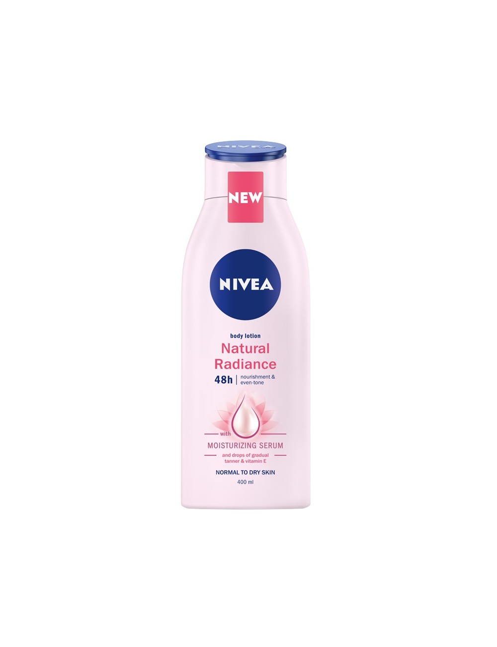 NIVEA Natural Radiance body lotion with an intensely moisturizing serum and vitamin E, gradually evens out your skin tone. Long-lasting 48 hours moisturizing and makes your skin soft to the touch.