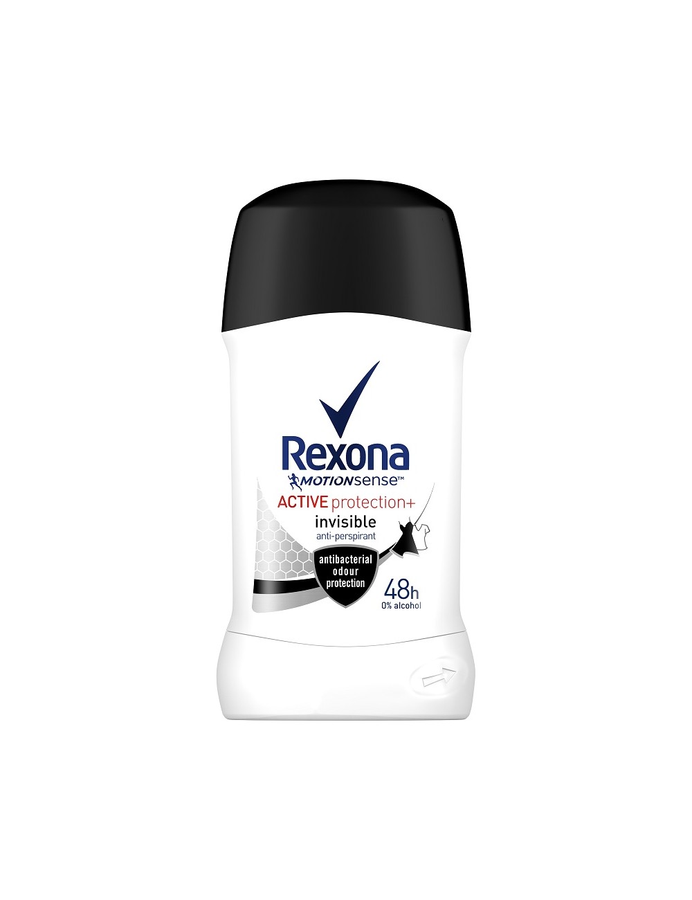 Antyperspirant w sztyfcie Rexona Active Protection+ Invisible to natychmiastowa ochrona przed potem. Dzięki technologii Motionsense™ zapewni Ci świeżość i ochroni przed nieprzyjemnym zapachem aż do 48 godzin.
